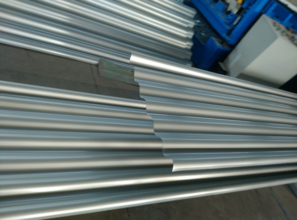 首先做一V字型材料,可選用不同的材料和規格,視實際情況而定.做接水處安裝在底部后在上面鋪放復合彩鋼瓦。